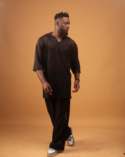 Men's Mesh Sheer Solid Short Sleeve No Collar Party Shirt With Plain Trouser