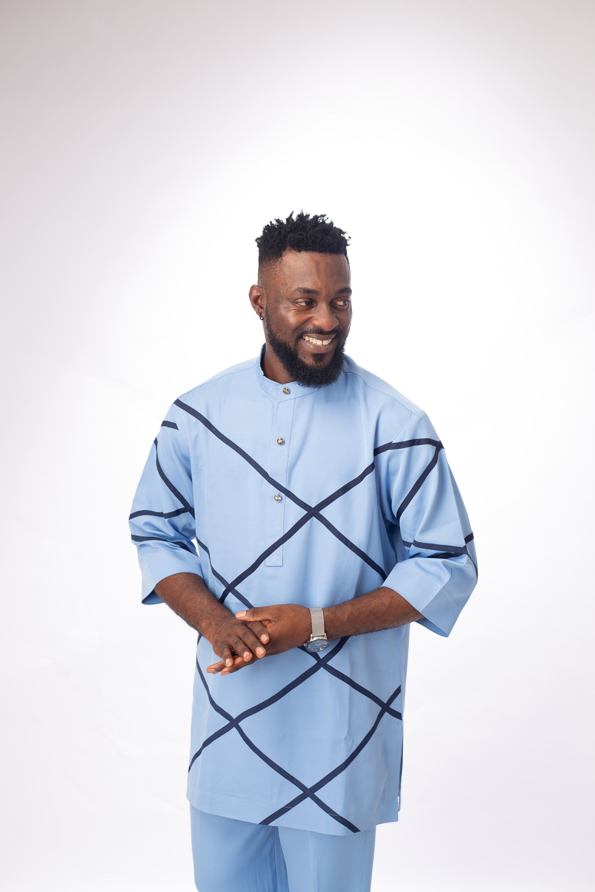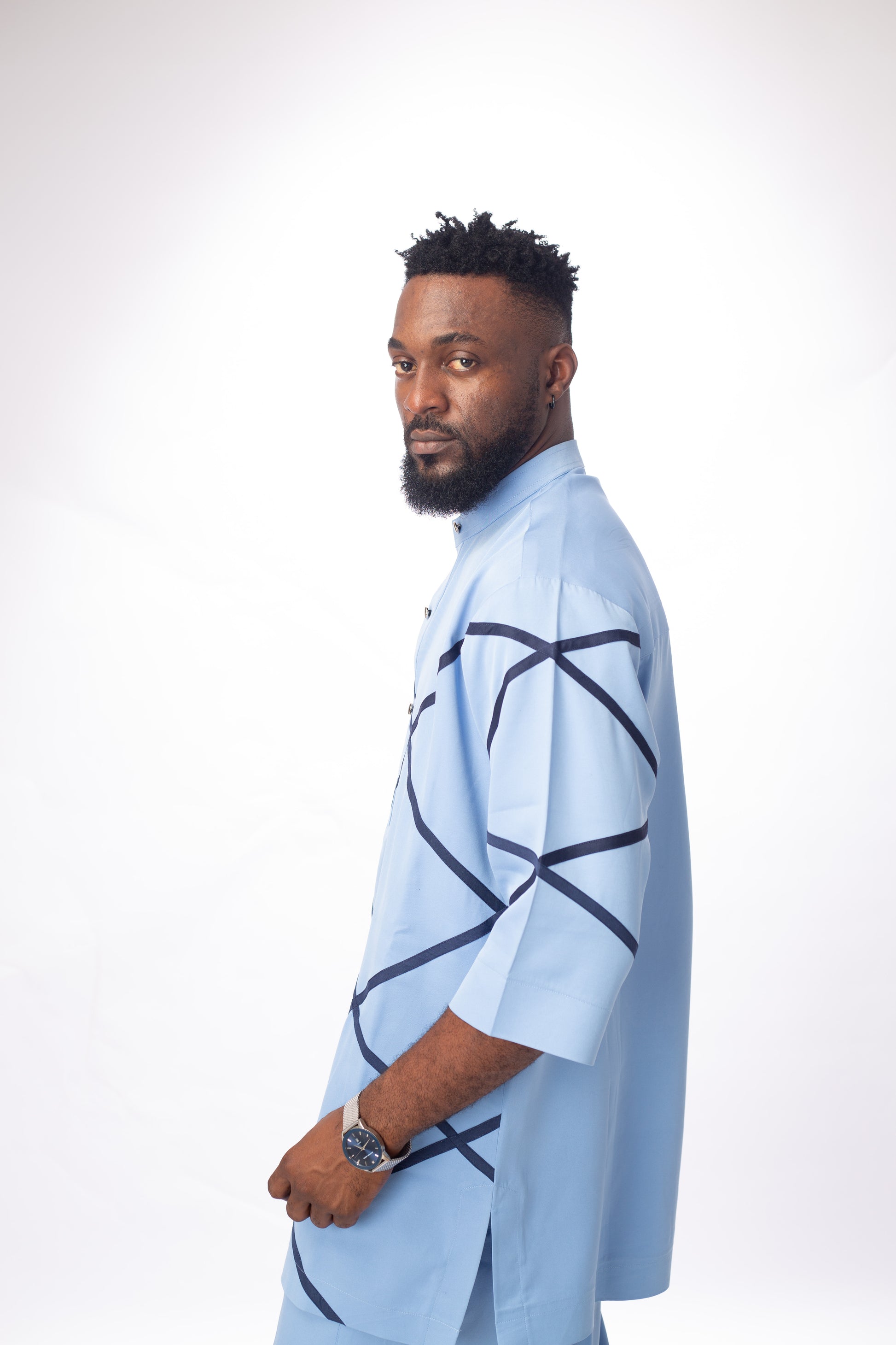 Men's Senator Native Wear (sky Blue With Black Mat Line Design Short Sleeve)