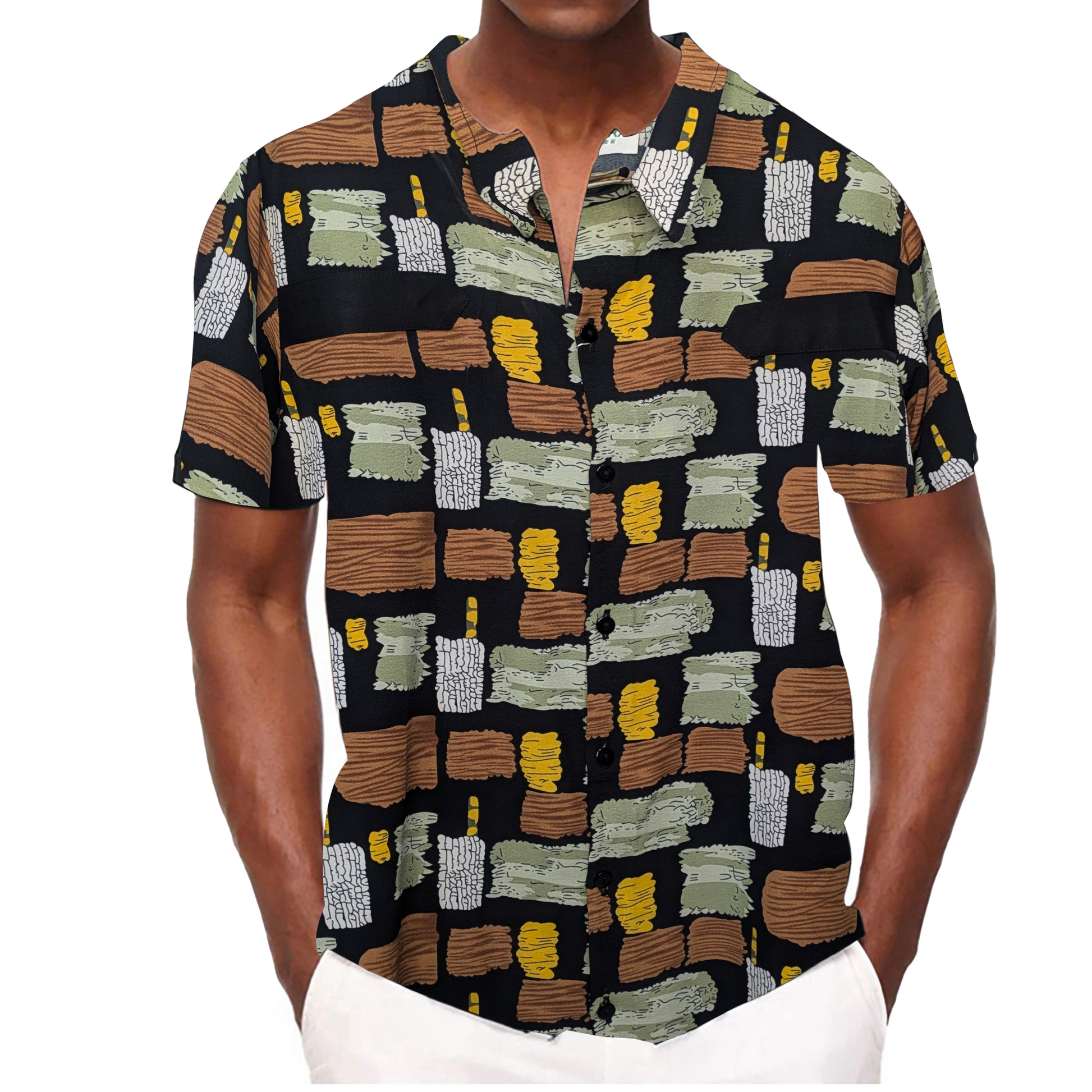Mens Vintage Graffiti Art Brush Pattern Shirts Hawaii Beach Shirt Casual